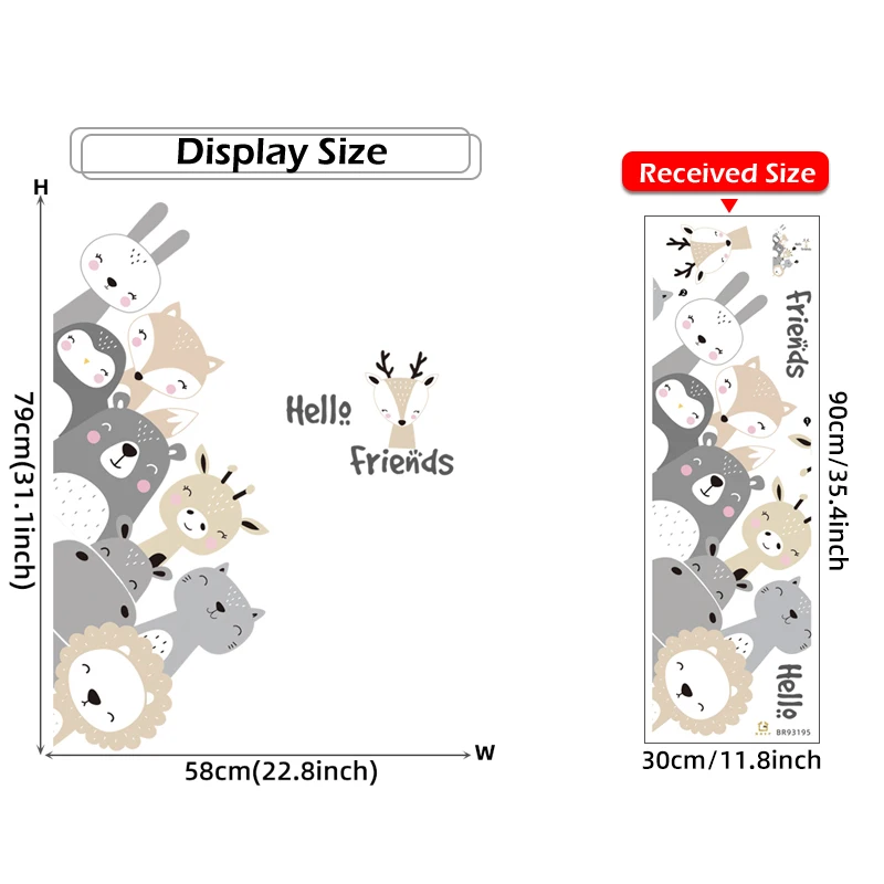 Cartoon Cute Animals Lion Bear Hippo Friends Wall Stickers Door Stickers