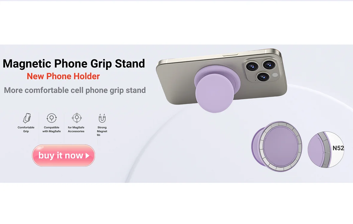 Magnetic grip holder for iphone 15 14 13 12 series, magnetic phone case or magnetized coil.