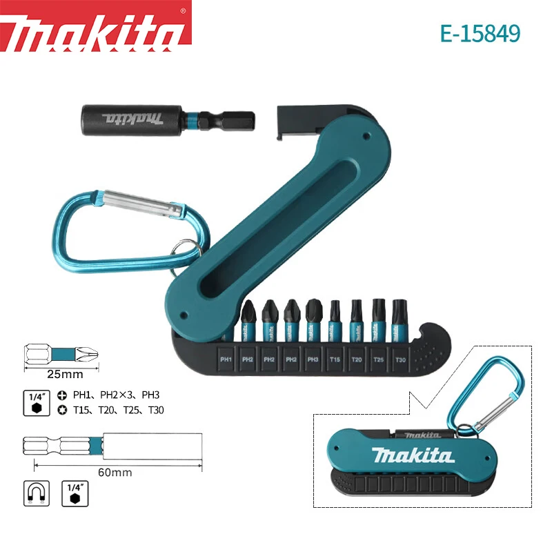 Makita E-15849 Screwdriver Bit Set 10Pcs Hexagonal Electric Screwdriver Bits Magnetic Sleeve PH1 PH2 PH3 T15 T20 T25 T30