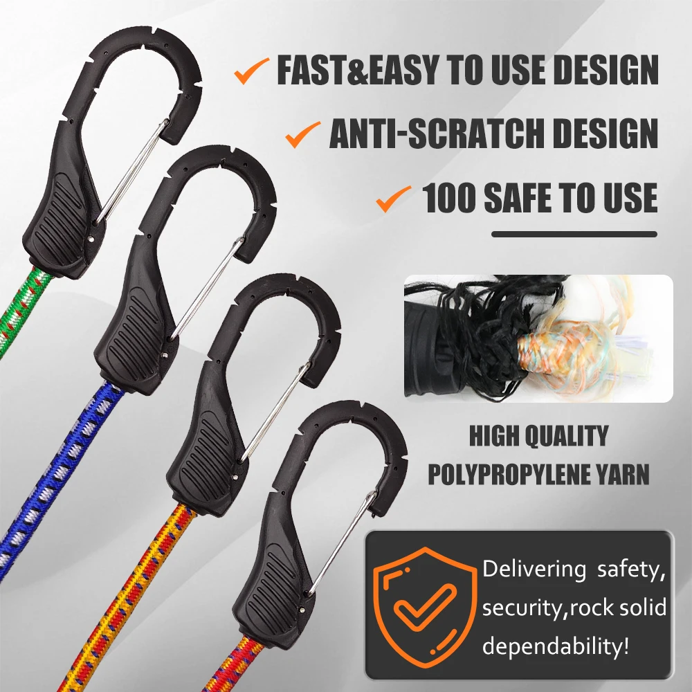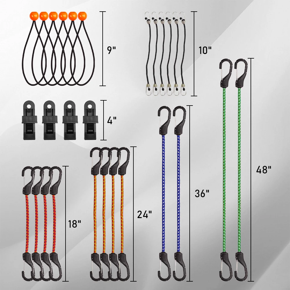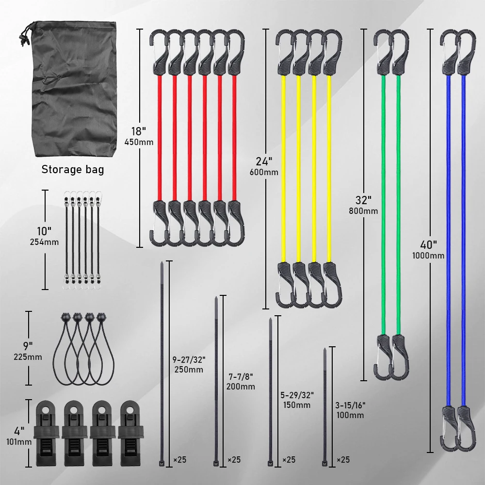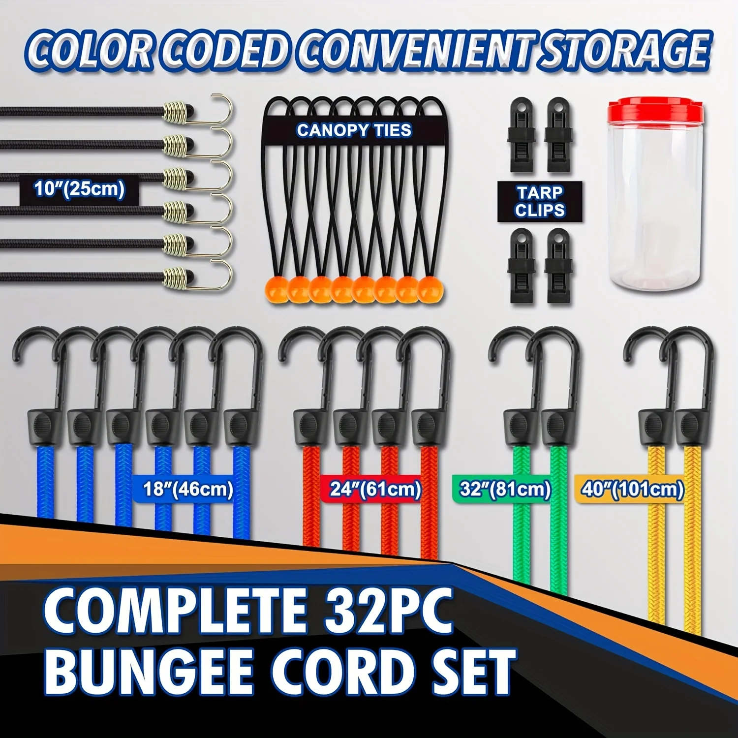 28pcs/32pcs/129pcs Bungee Cords Assortment Jar Includes Multiple lengths of Bungee Cord With Hooks,Trap Ball Ties And Tarp Clips
