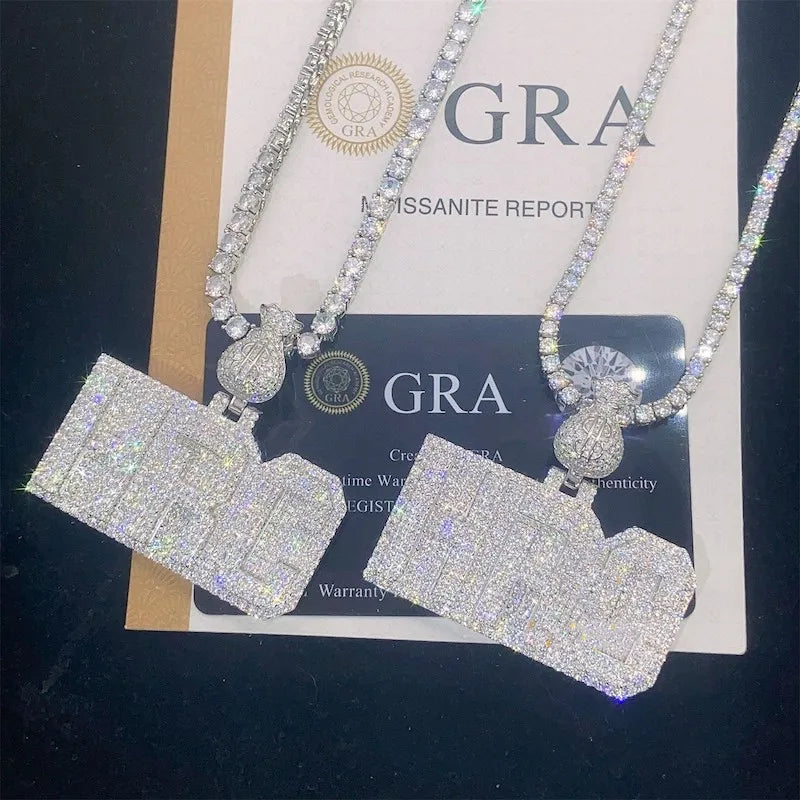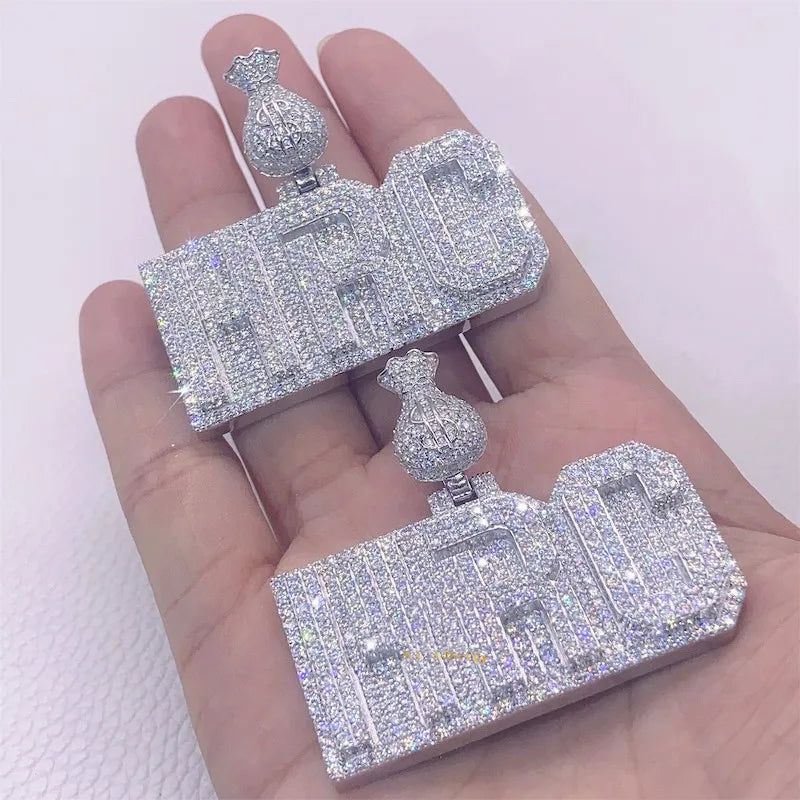 Customized Moissanite Pendant Luxury Jewelry 925 Silver Iced Out Vvs Moissanite Letter Initial Name Pendant With Gra Certificate