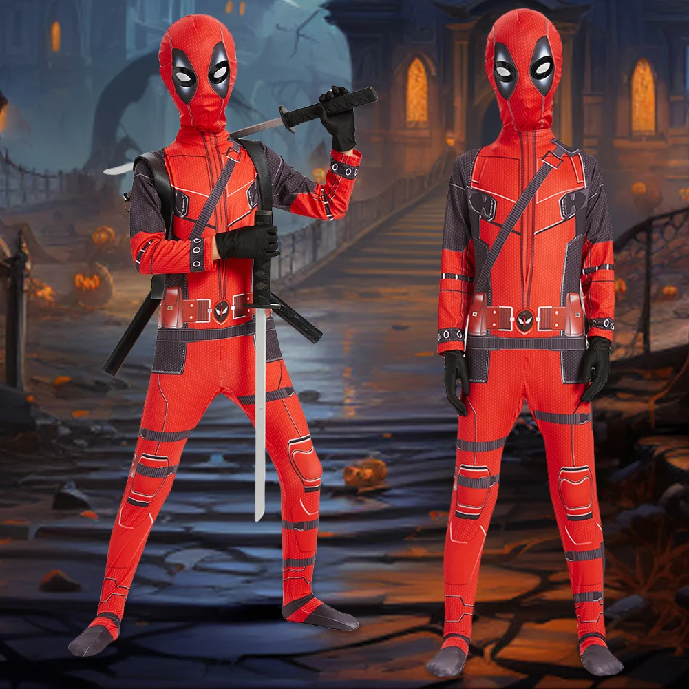 2.Safe & Eco-Friendly: The Deadpool cosplay costume's materials are safety certified and free from any harsh odors, featuring meticulous sewing with no sharp edges, ensuring absolute safety for children's wear.
