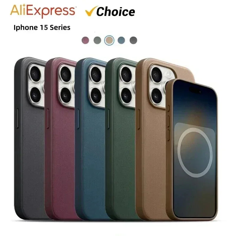 Leather For iPhone 15 Pro Max Plus Strong Magnet Case Wireless Charging Drop Protect Cover