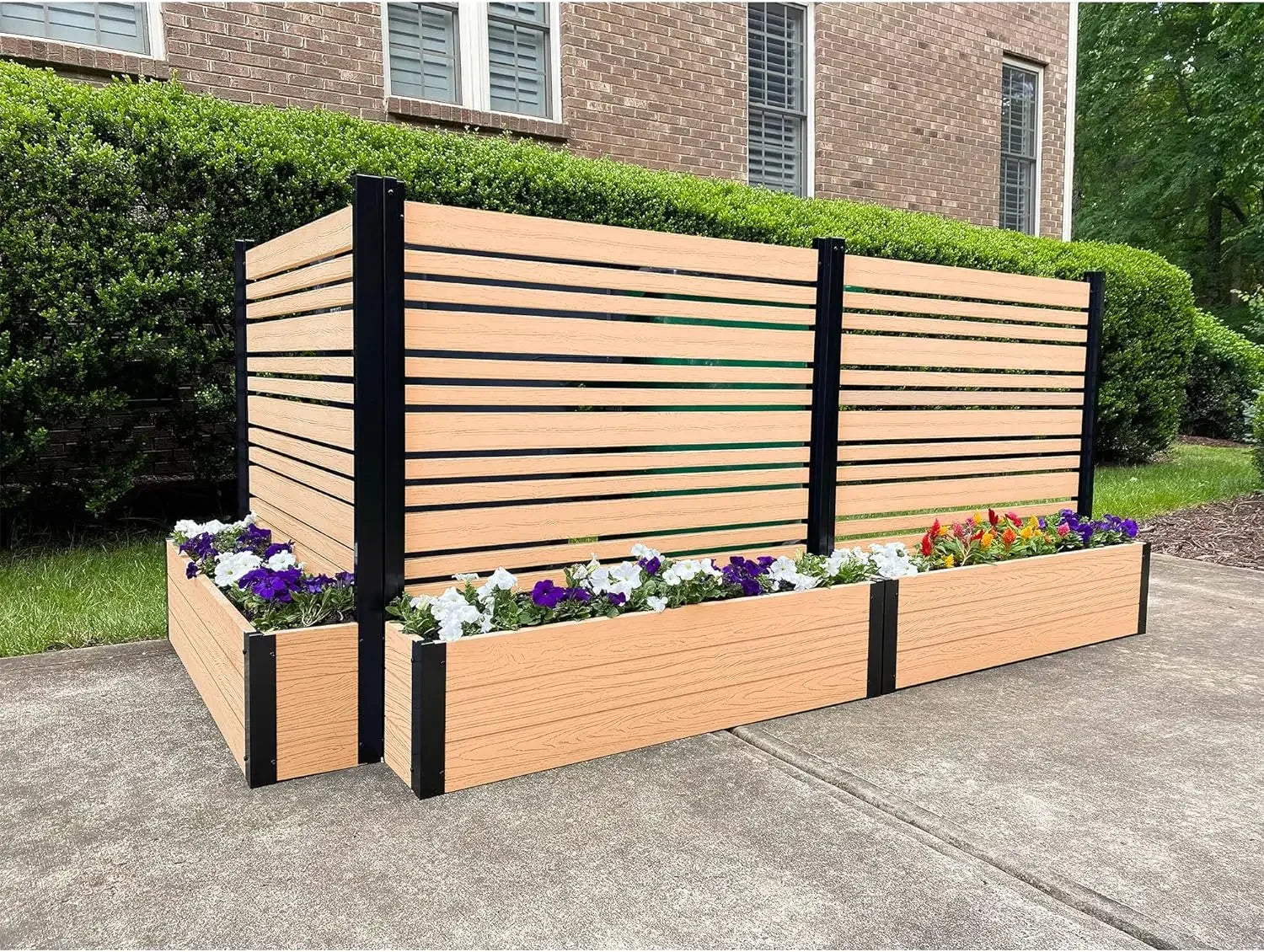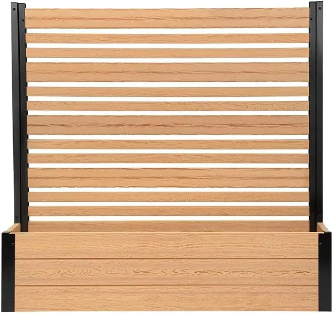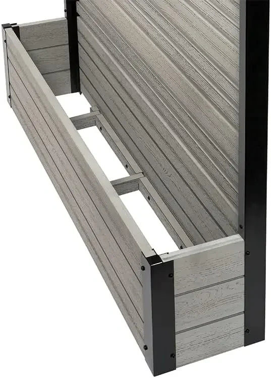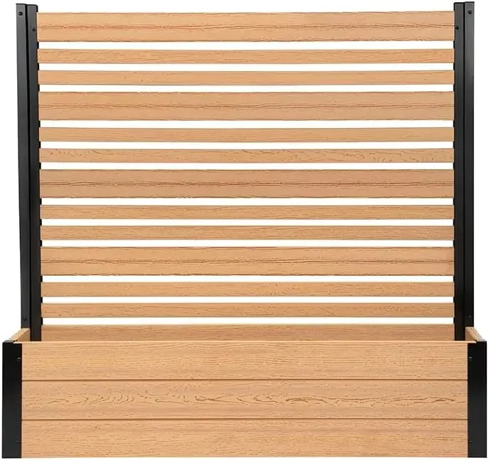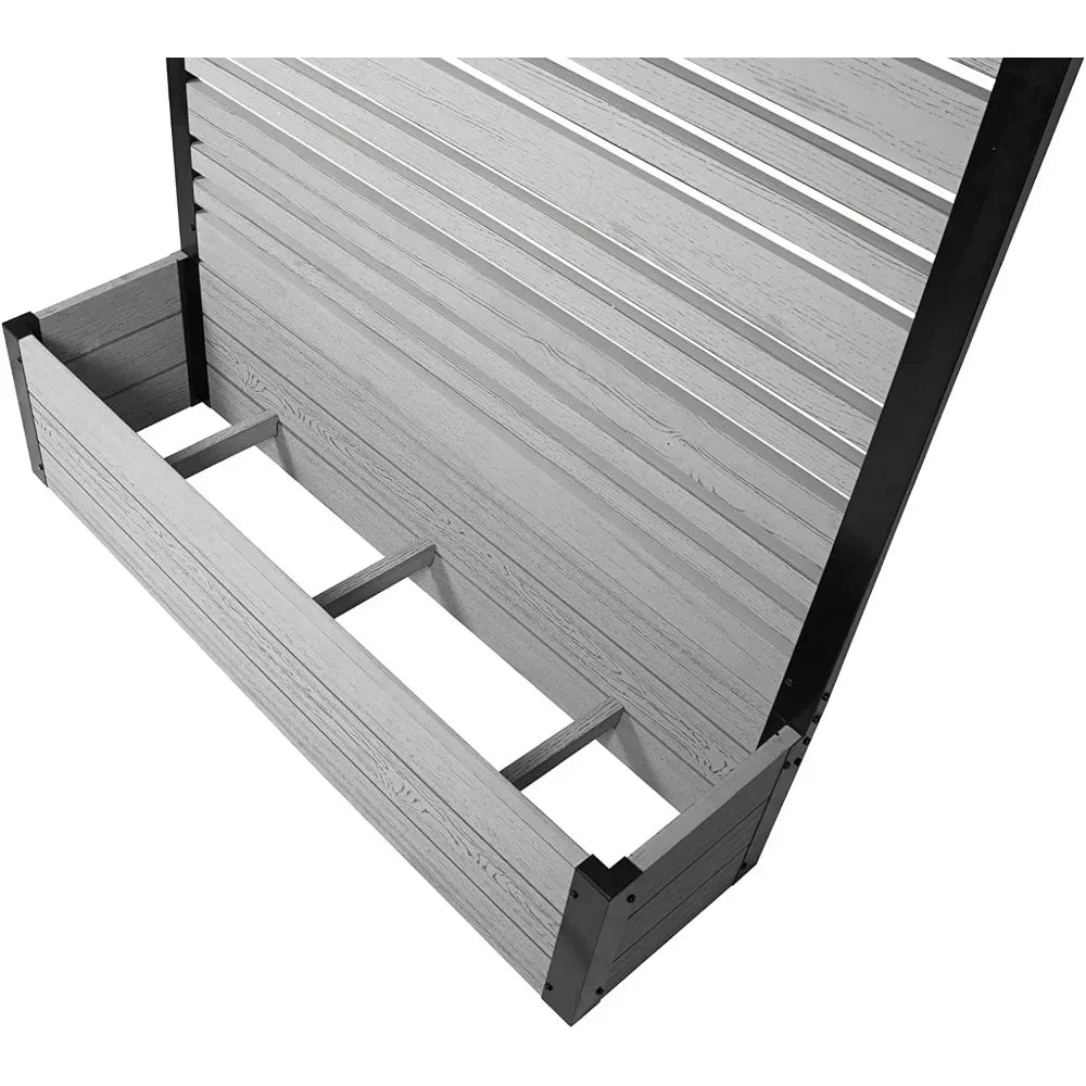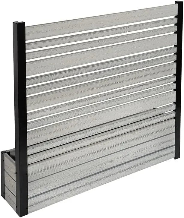 • DIMENSIONS: This slatted WoodTek vinyl privacy screen and planter box measures 44" H x 46" W x 9 1/2" L