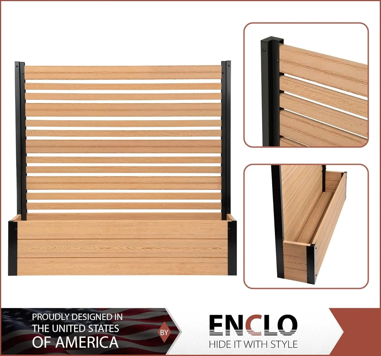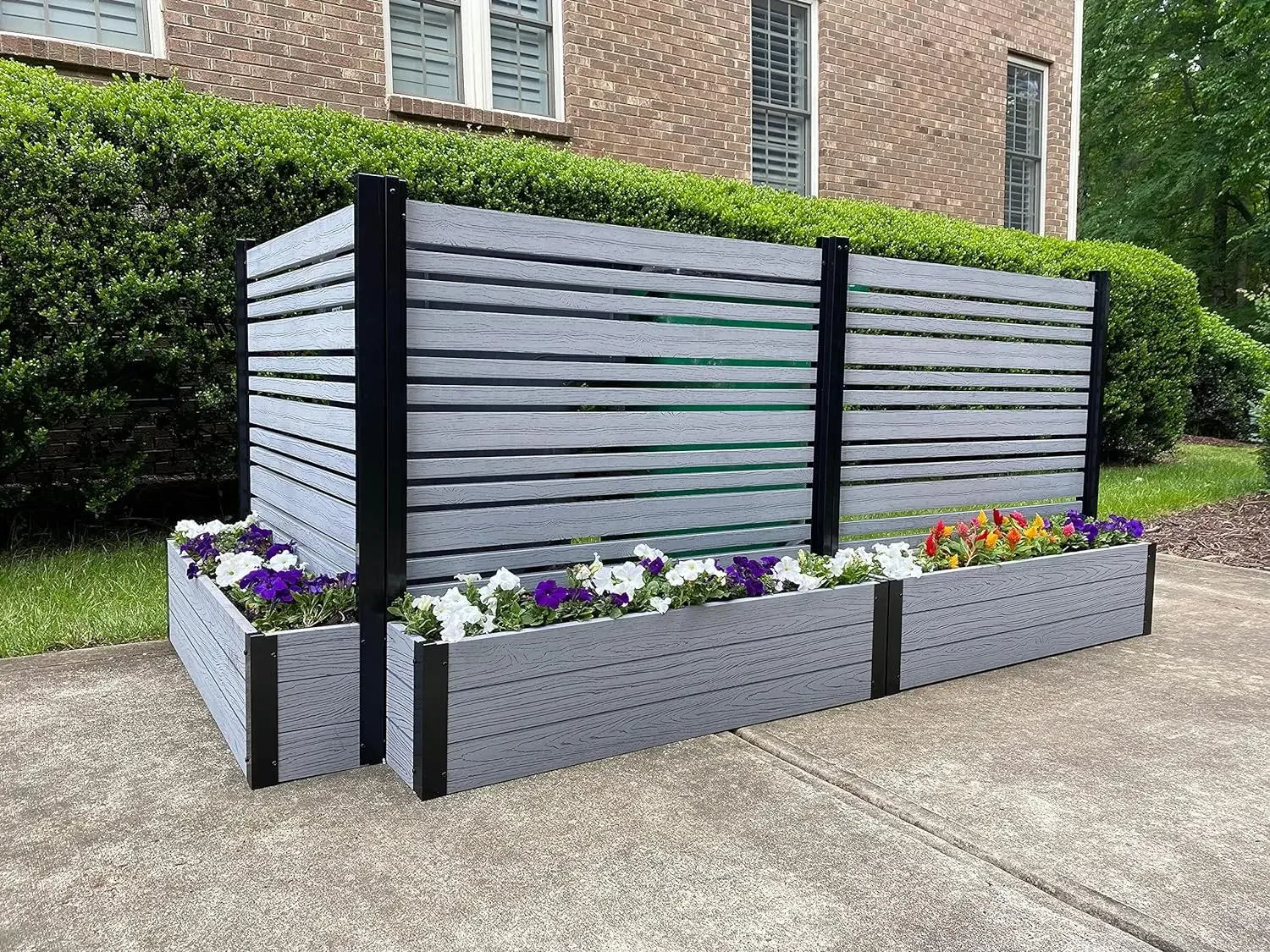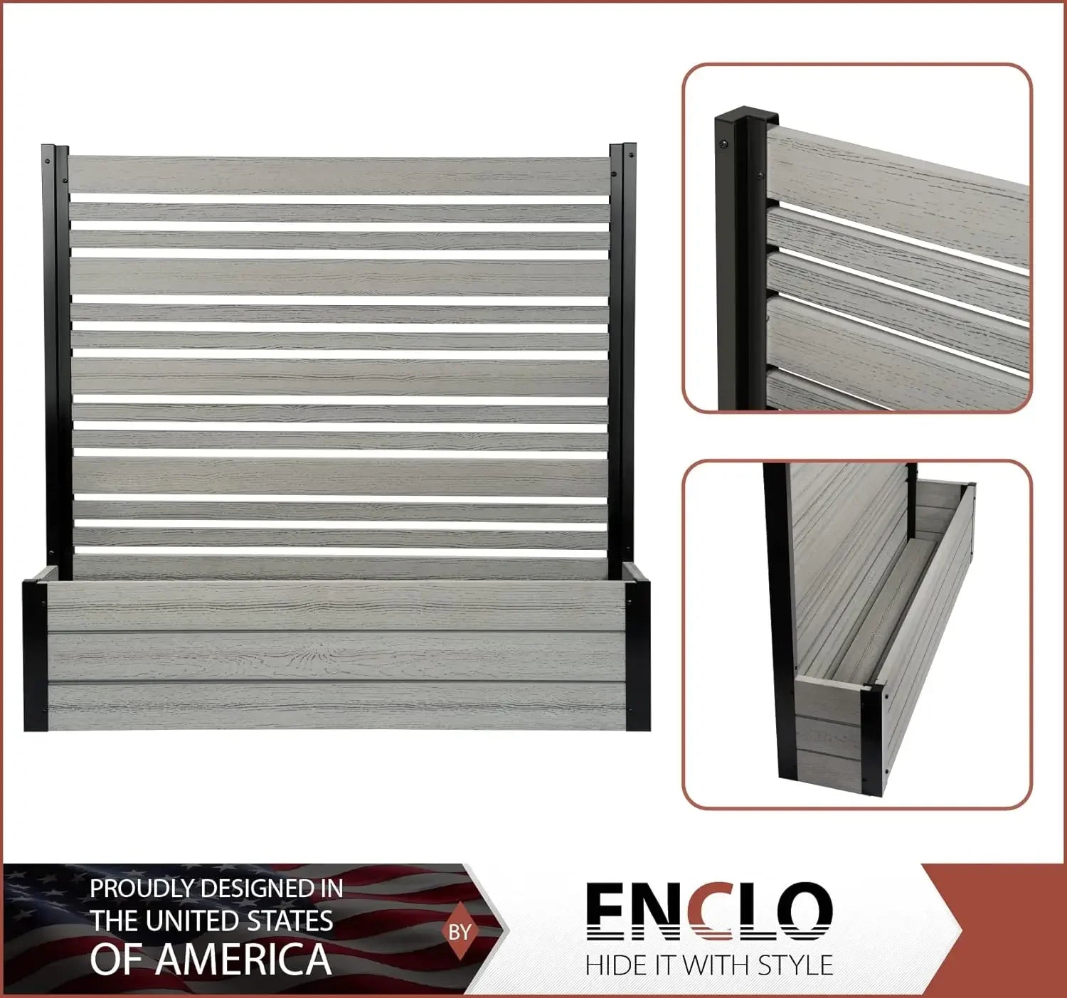 • DIMENSIONS: This slatted WoodTek vinyl privacy screen and planter box measures 44" H x 46" W x 9 1/2" L